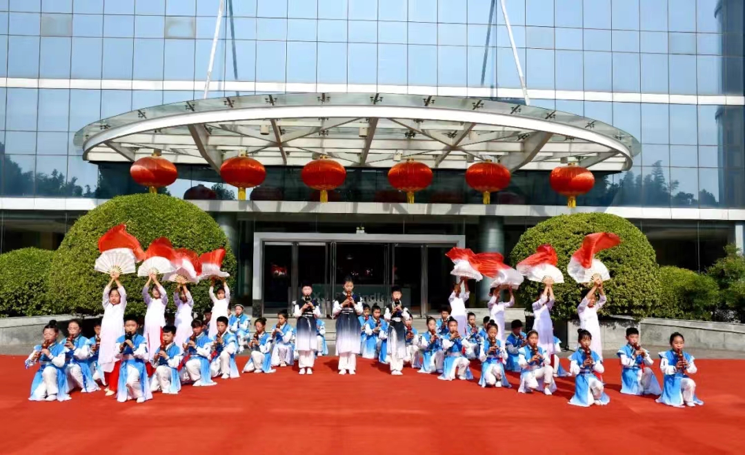 活動現(xiàn)場,70余名優(yōu)秀學(xué)生代表載歌載舞,用啦啦操《我和我的祖國》、葫蘆絲合奏《萬疆》等精彩的表演,表達(dá)對西繼迅達(dá)的深深謝意。