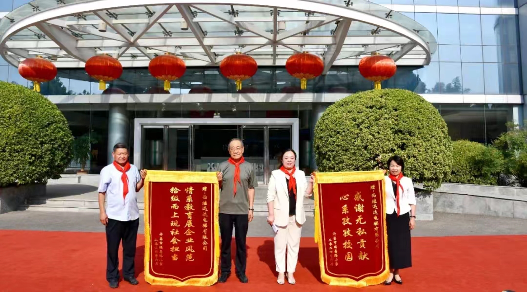 隨后,許昌經(jīng)濟技術(shù)開發(fā)區(qū)綜合服務(wù)中心副主任、文教衛(wèi)黨總支書記宋能瑜、委員徐濤,許昌市瑞昌路小學(xué)校長鄭春紅女士,親手將“情系教育展企業(yè)風(fēng)范,拾級而上現(xiàn)社會擔(dān)當(dāng)”、“感謝無私奉獻,心系孜孜校園”兩面錦旗獻給西繼迅達(dá)電梯,西繼迅達(dá)劉金忠董事長、售后總監(jiān)吳娜手捧這份謝意,與各位領(lǐng)導(dǎo)合影留念。