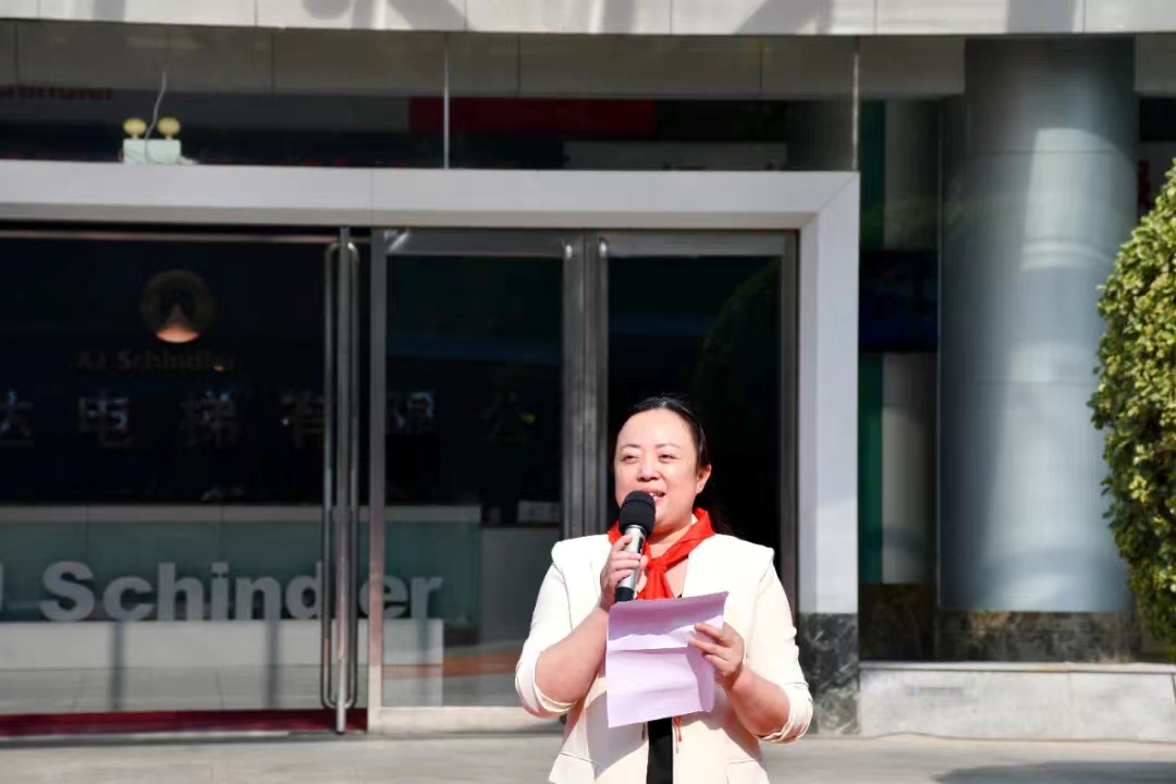 最后,公司售后總監(jiān)吳娜代表西繼迅達(dá)電梯感謝開發(fā)區(qū)文教衛(wèi)和瑞昌路小學(xué)送來的錦旗。她說,西繼迅達(dá)作為一家 有強烈社會責(zé)任感的企業(yè),為了給咱們?nèi)鸩沸W(xué)的同學(xué)們營造一個良好的學(xué)習(xí)環(huán)境,讓孩子們在更多的關(guān)愛中愉 快地學(xué)習(xí)、幸福地成長,我們西繼迅達(dá)電梯為瑞昌路小學(xué)教學(xué)樓捐助電梯,充分凝聚著我們西繼迅達(dá)電梯劉董事長 的愛心和熱情,寄托著我們所有西繼迅達(dá)人的殷切期望,祝愿孩子們好好學(xué)習(xí)!健康成長!早日實現(xiàn)自己的人生理想。
