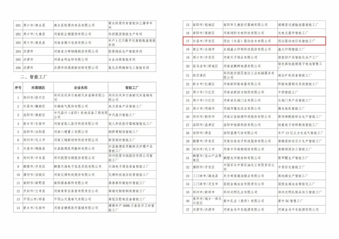 日前,河南省工業和信息化廳公布了 2024 年度河南省智能車間、智能工廠名單,迅達驅動公司曳引機智能工廠榜上有名,被評為 2024 年河南省智能工廠。