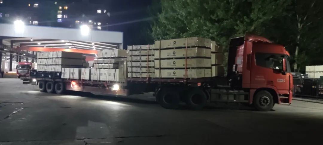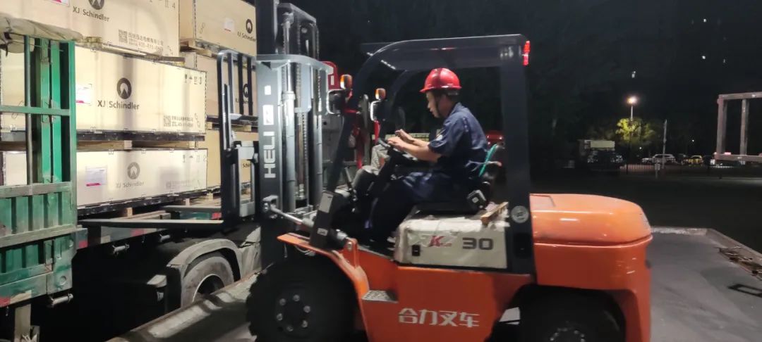 深夜,滿載貨物的車輛蓄勢待發(fā),正在做發(fā)貨前的各項準備工作,力爭以最快的速度把電梯設備運送至安裝現(xiàn)場。