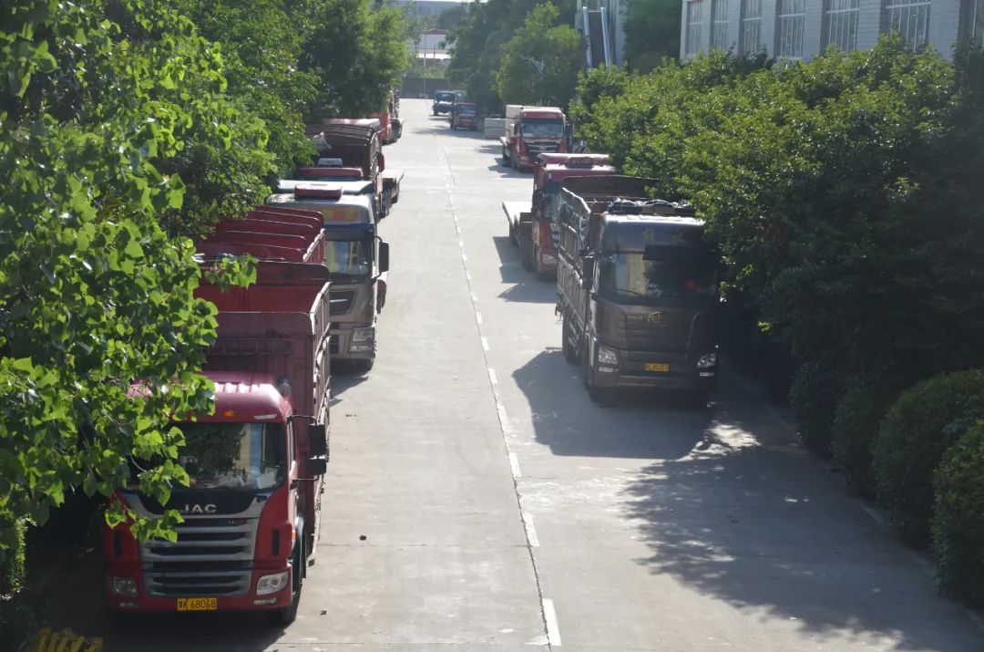 物流發(fā)運中心的貨車臨時停靠區(qū),一輛輛等待裝車的貨車,時刻準備著執(zhí)行更艱巨的任務。