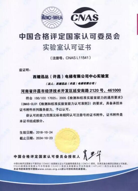 西繼迅達中心實驗室被認定為國家認可實驗室